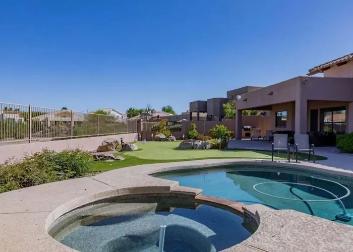 Die Villa in Mesa verfügt über eine komplette Küche mit einer Mikrowelle, einer Kaffee-/Teemaschine und einem Kühlschrank, damit Gäste ihre eigenen Mahlzeiten zubereiten können. Gäste können ein erfrischendes Bad in einem Swimmingpool nehmen oder sich in einem Wellnesscenter entspannen.